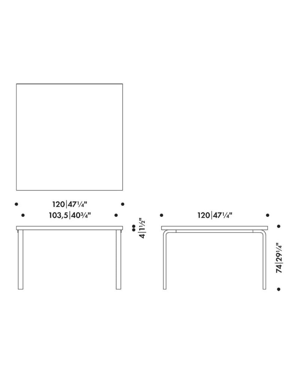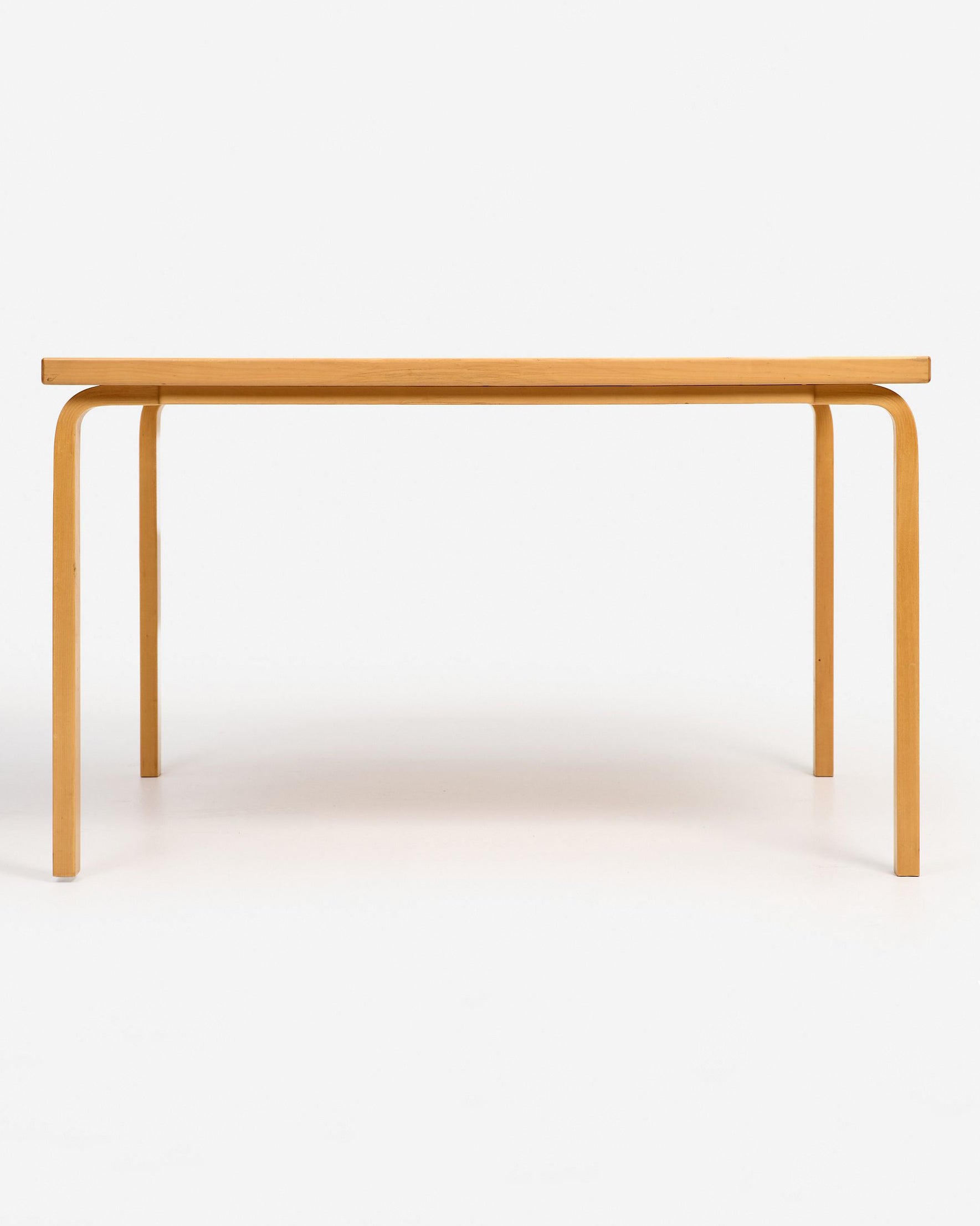 Artek's Table 84, designed by Alvar Aalto in 1933, is a spacious and versatile wooden dining table that can also serve as a desk or a conference table. The Aalto table 84 features solid birch legs and edges, and its square-shaped tabletop is finished with a soft, matte linoleum, an ideal material for writing desks. Made in Finland.