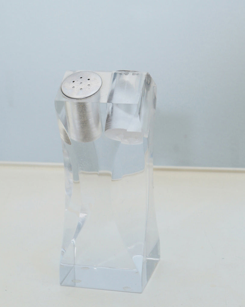 1960s rare salt and pepper lucite shaker. Great functionality and perfect conversation piece.