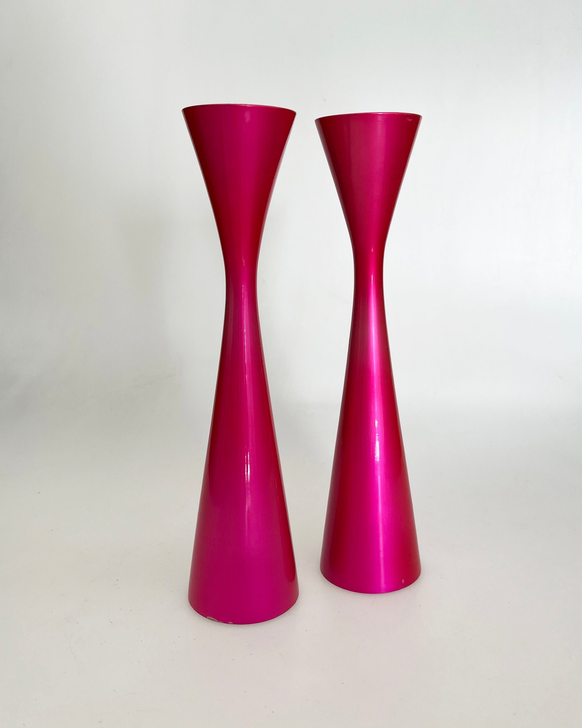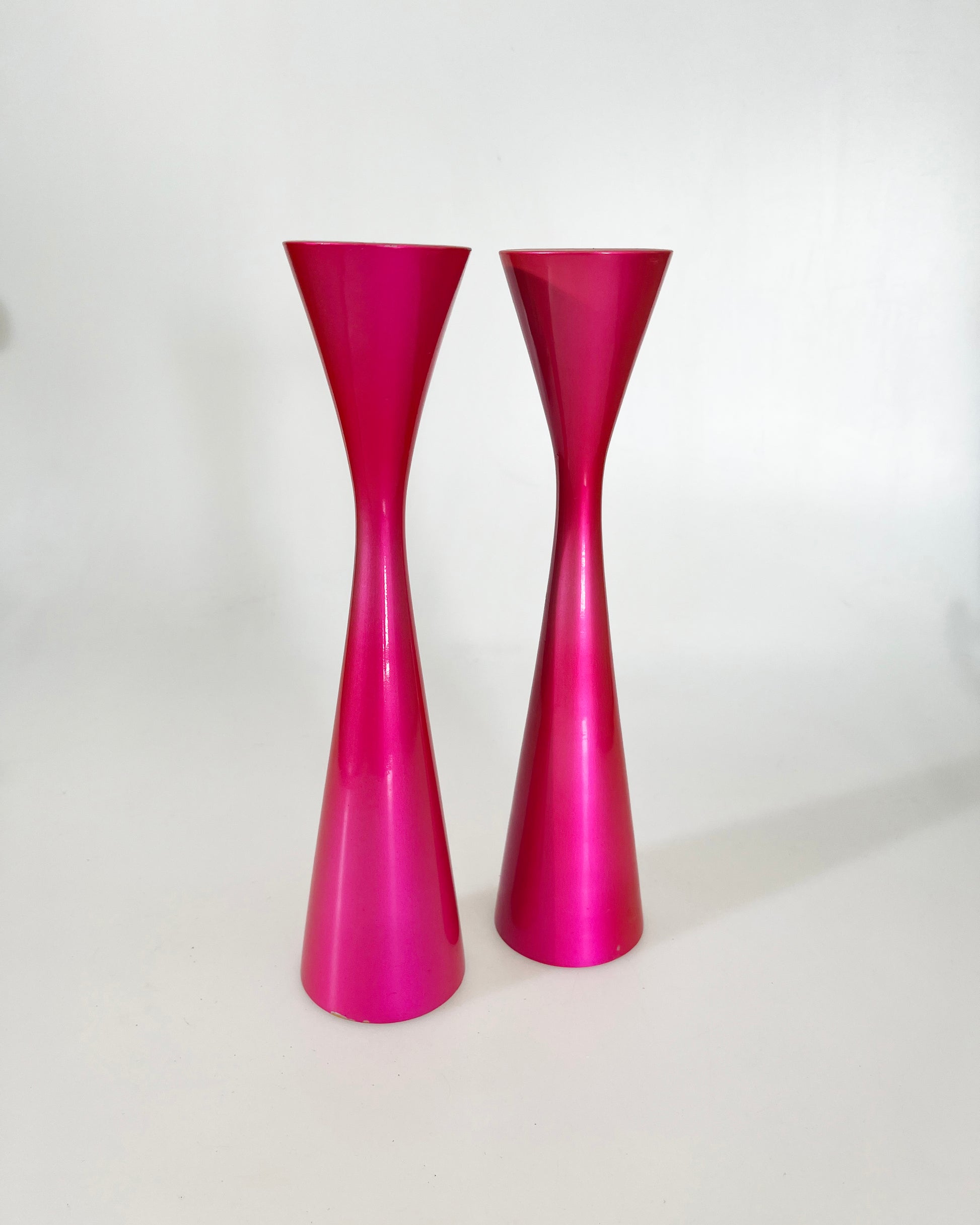 1960s Fluorescent Pink Mod Candle Stick Holders