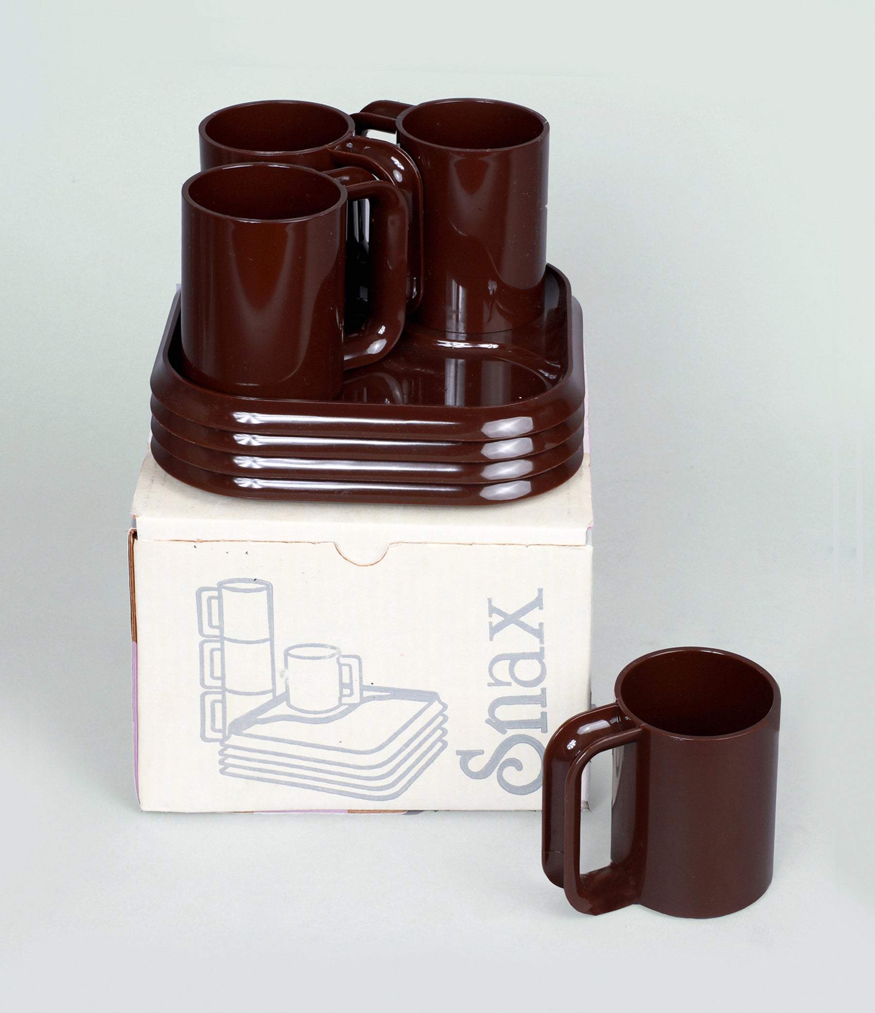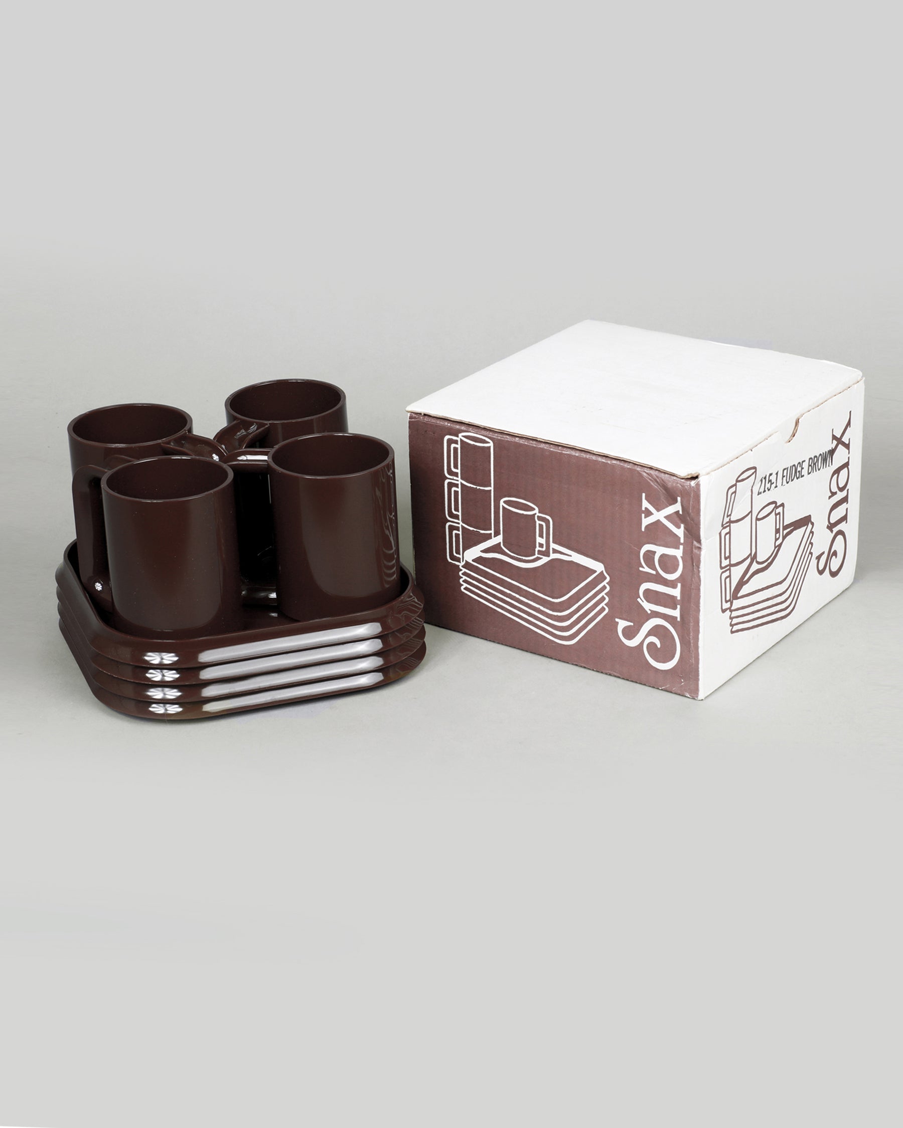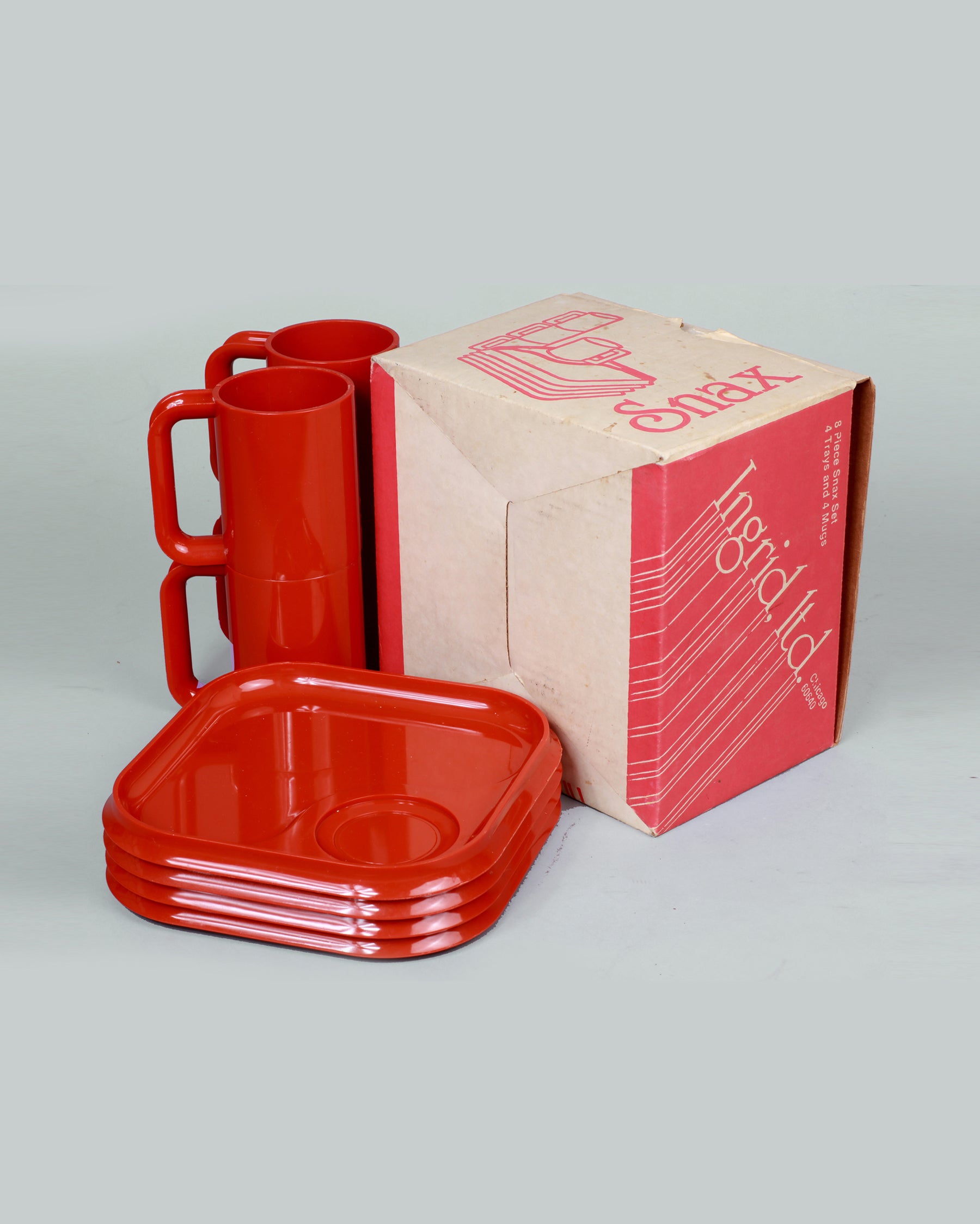 1960s Ingrid Limited Set of Four Snack Plates and Four Mugs NOS New in Box