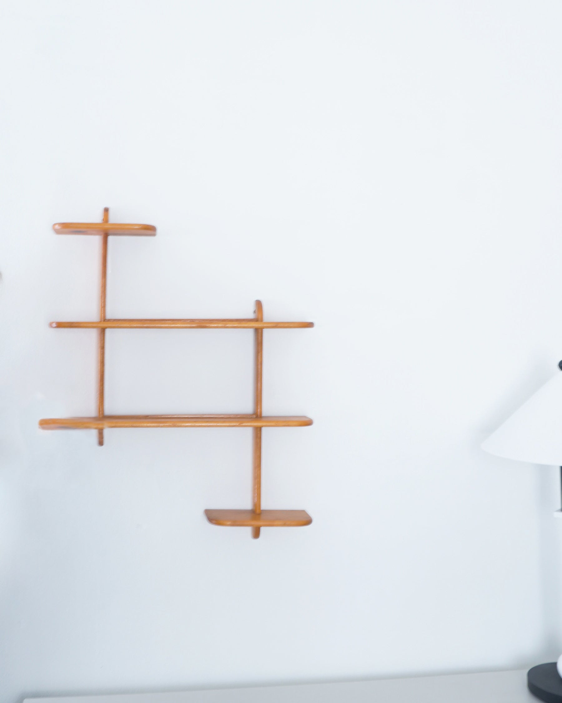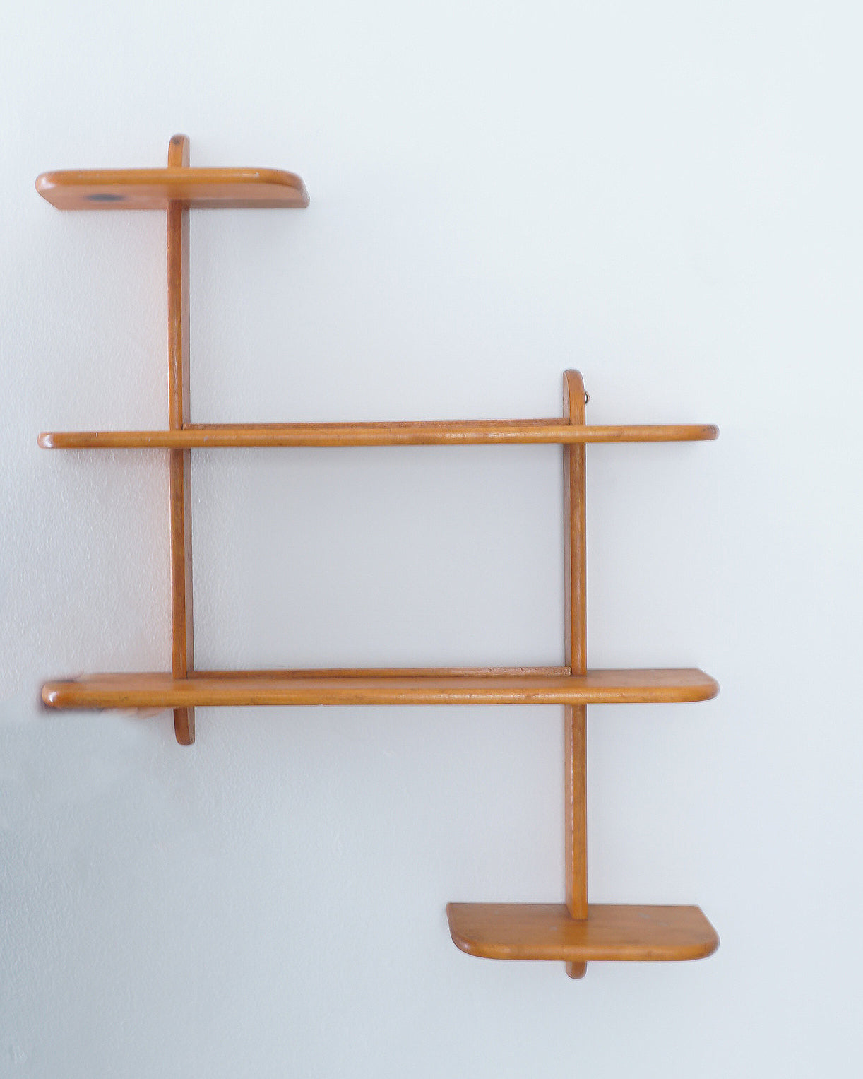 1960s mid century modern teak shelving. Hooks for hanging.