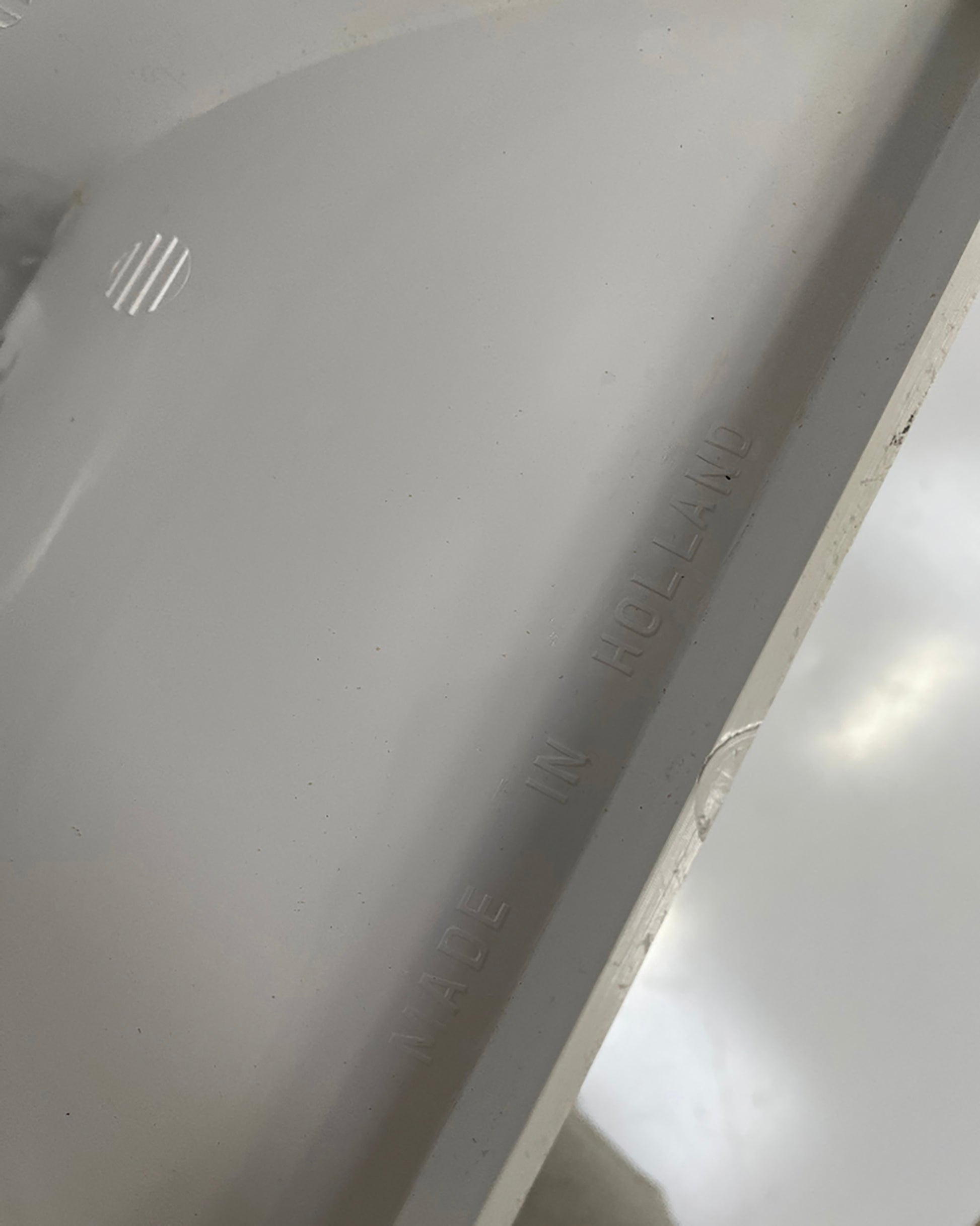 1970s beautiful, recently re-upolstered space age stool or footrest. Corners of stool don't sit snuggly, but this doesn't detract from the stool's beauty. Made in Holland.