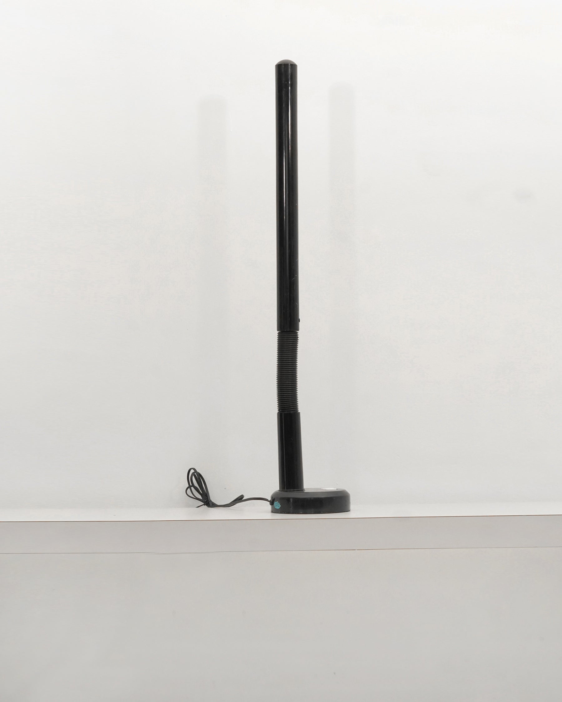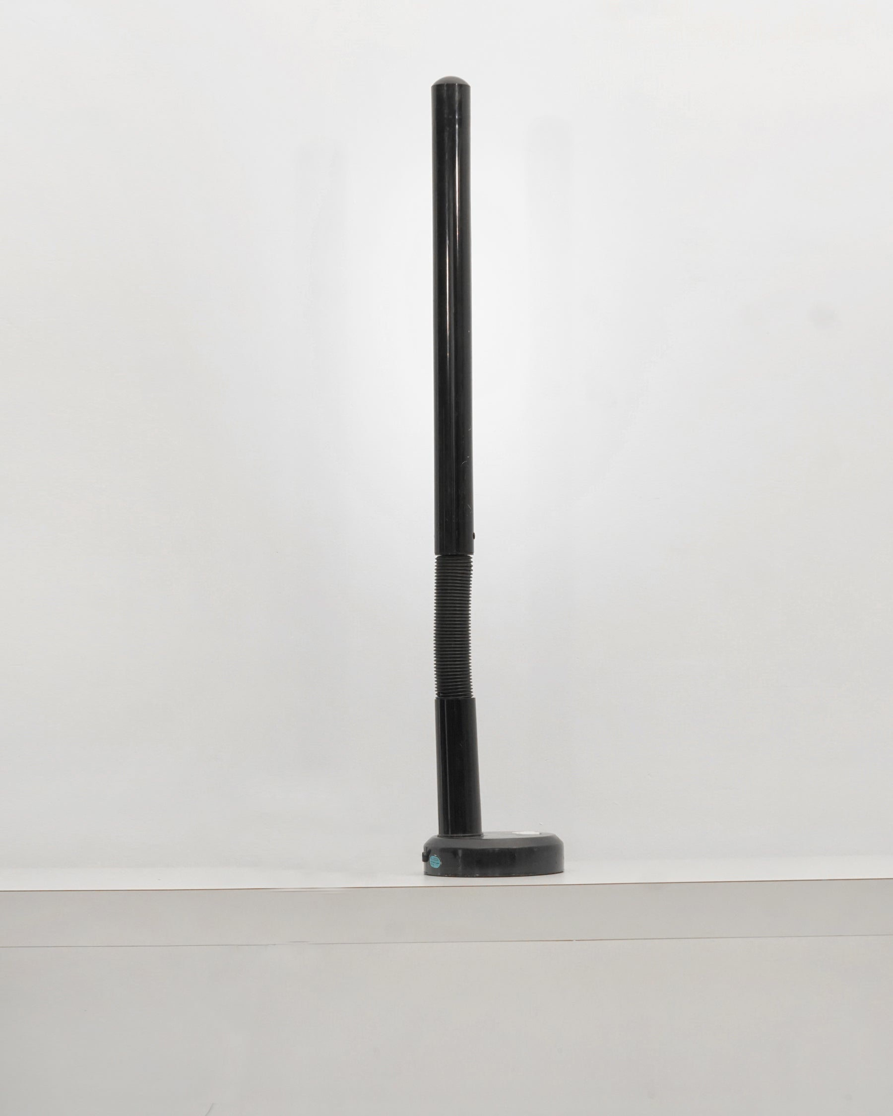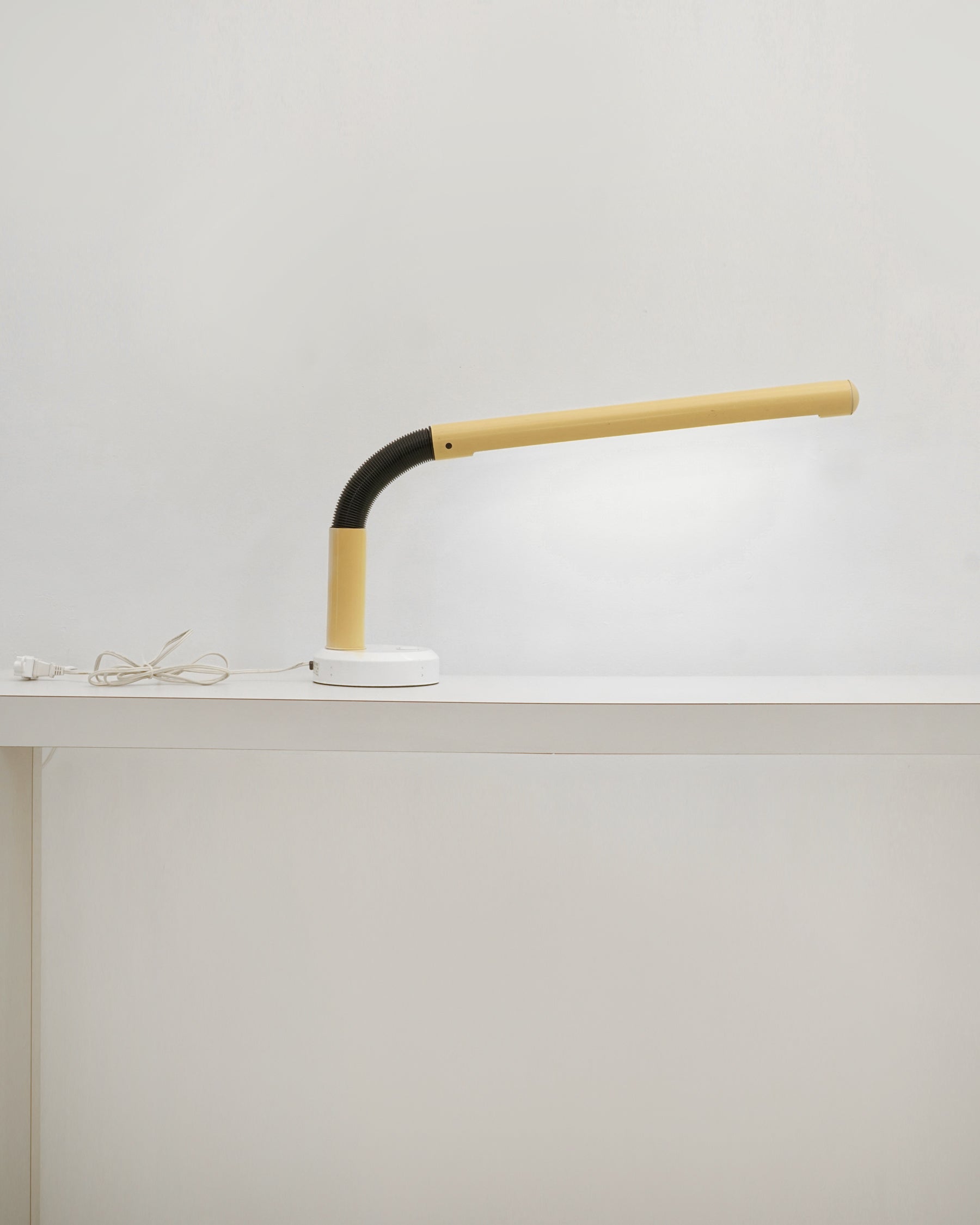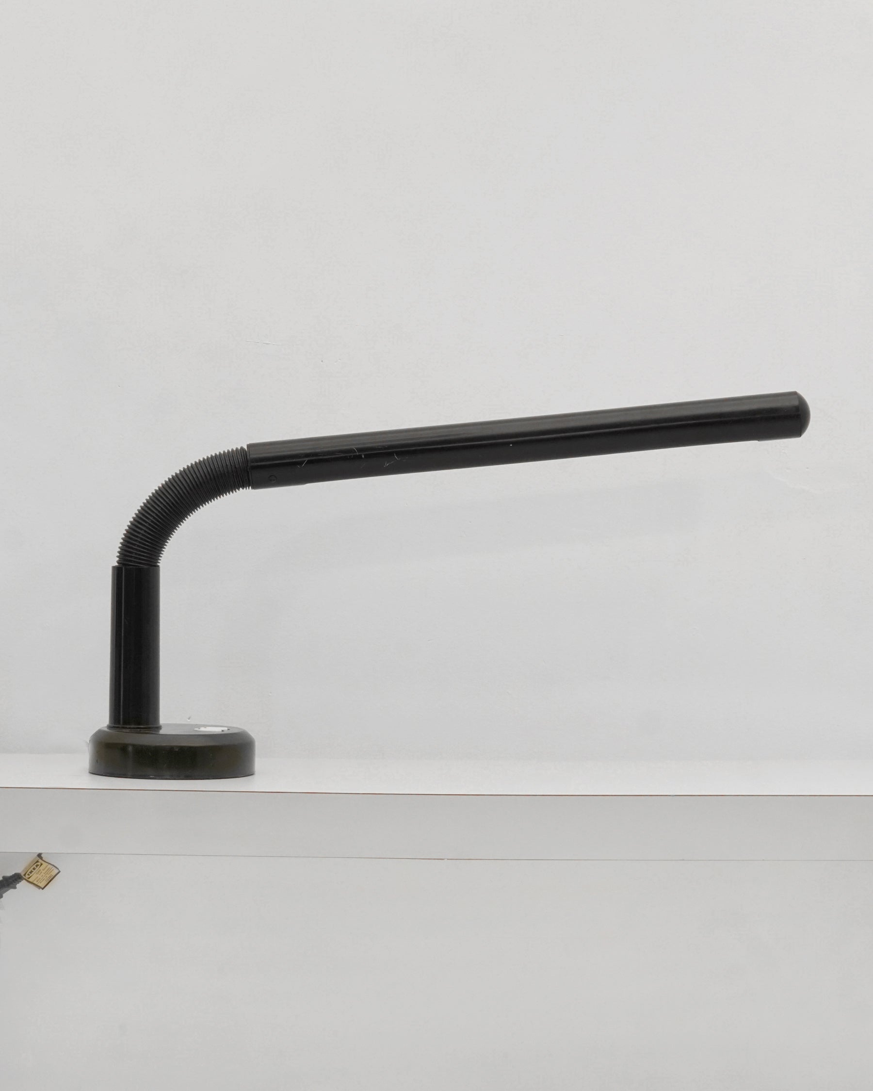 1970s Space Age Plastic and Metal Tube Desk Lamp which adjusts in just about every direction. In very good vintage condition and works perfectly. Comes with a fluorescent tube bulb. Two available and sold separately. One black made by IKEA, and one in a cream, white and black colorway.