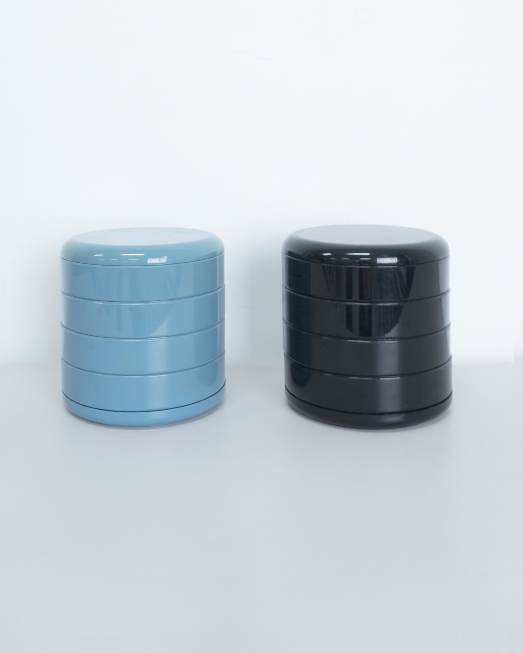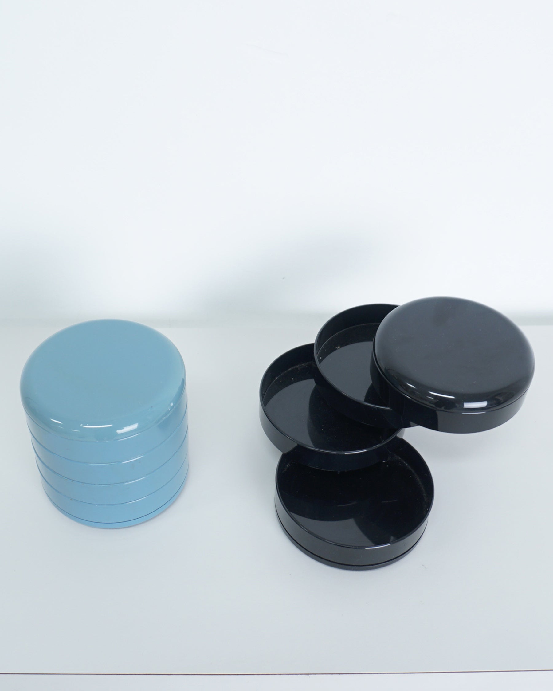 1970s swivel organizer by Interdesign. One available in blue and one in black Minor scuffs from age and use. Very good condition. Blue has some discoloration on interior. A re-issue of this piece is now sold at the Museum of Modern Art.