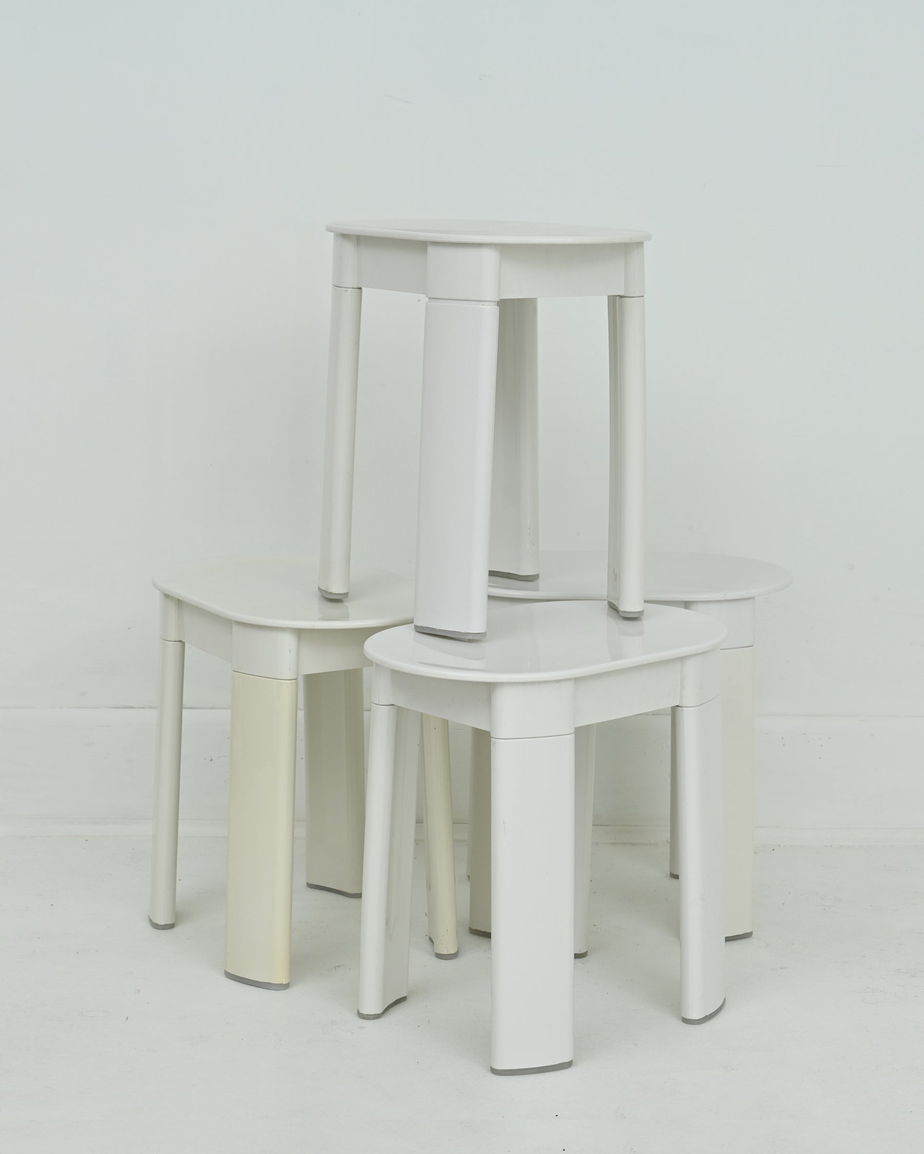 Space Age 4-Legged Stool or Side Table by Olaf von Bohr for GEDY. Made in Italy. Four available and sold separately. Each have light wear consistent with age and use.