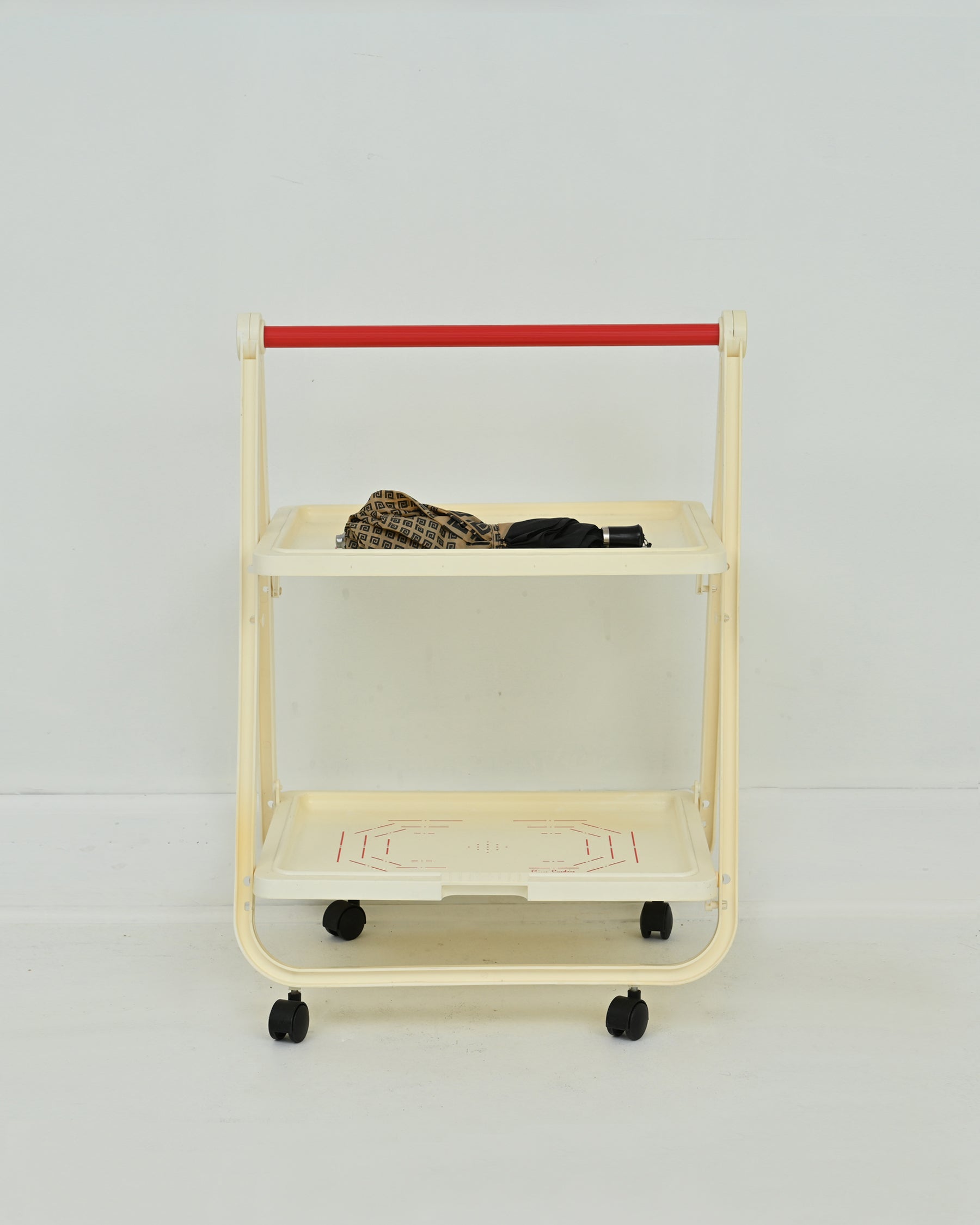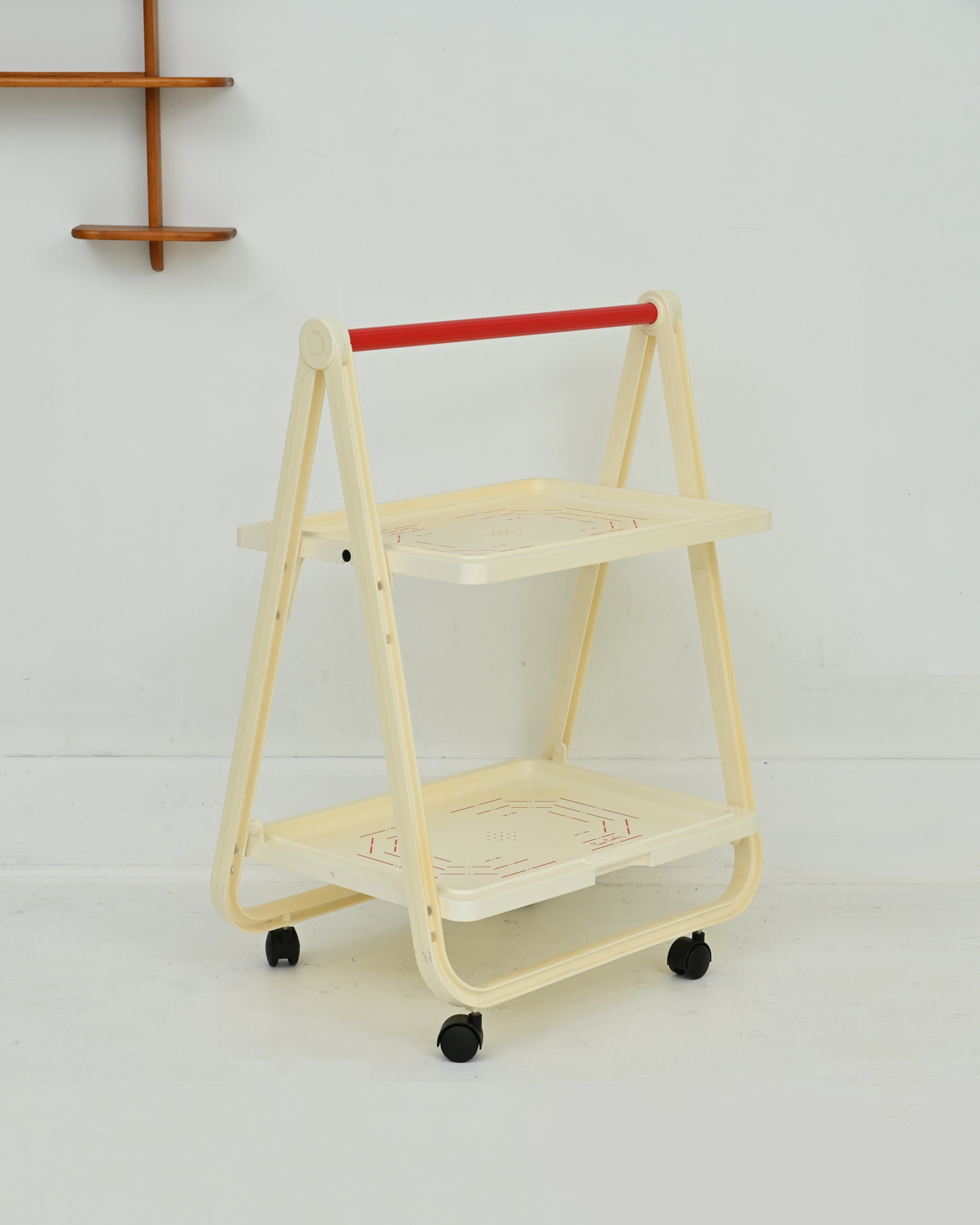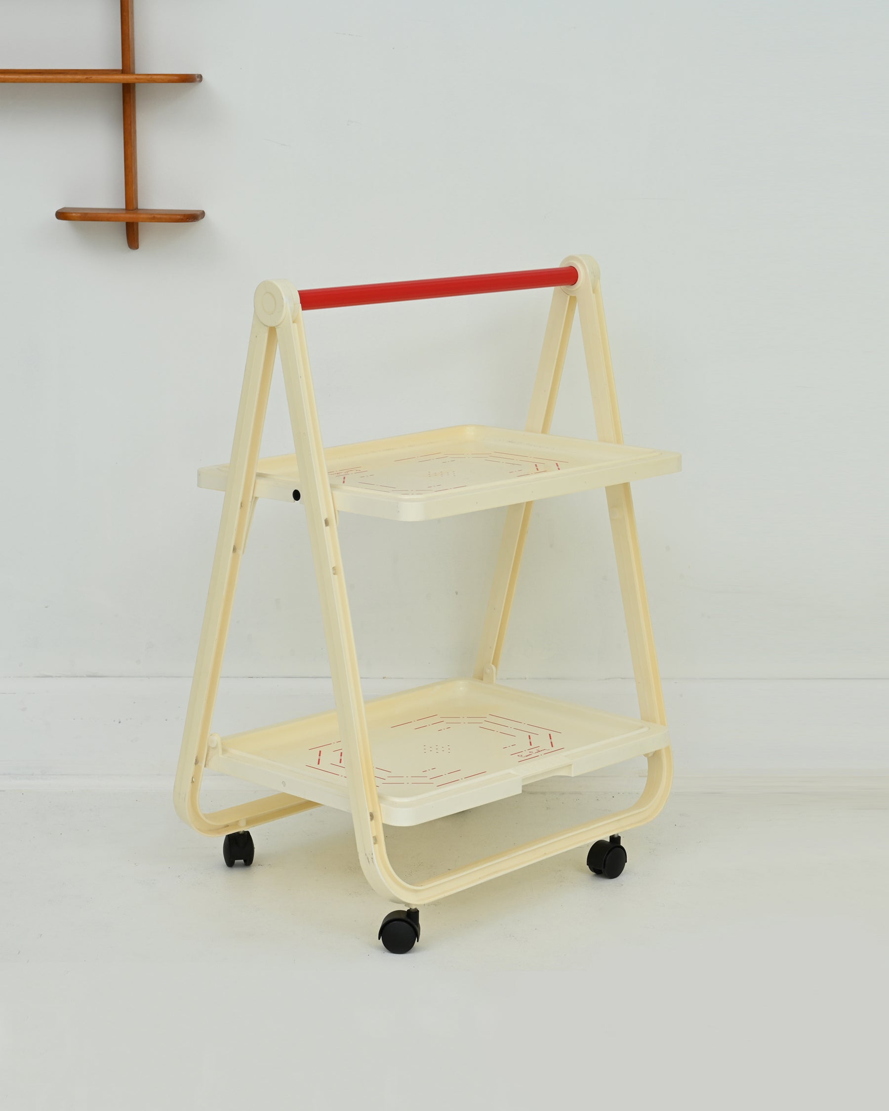 1970s White with Red Bar Cart Trolley by Pierre Cardin for Simo