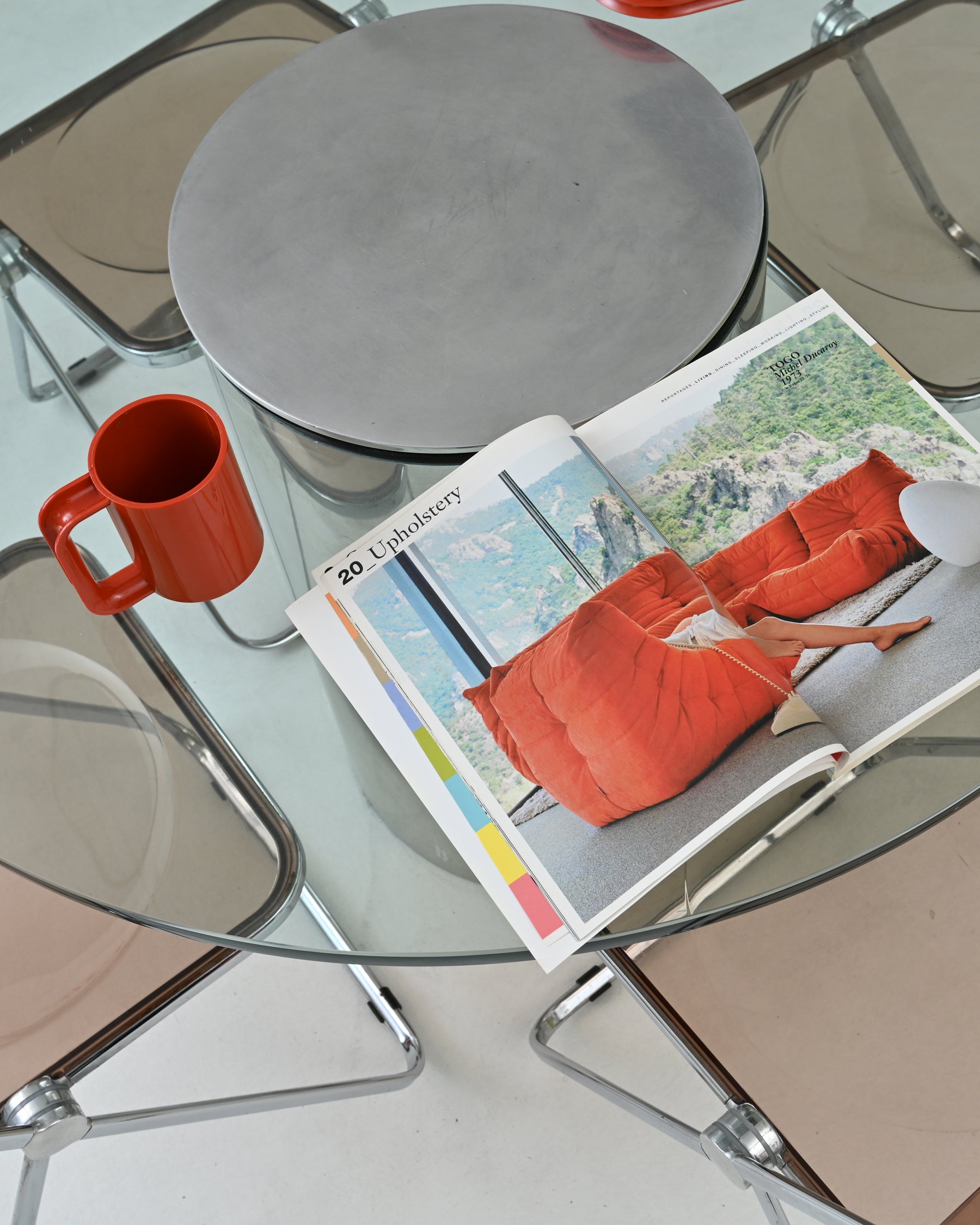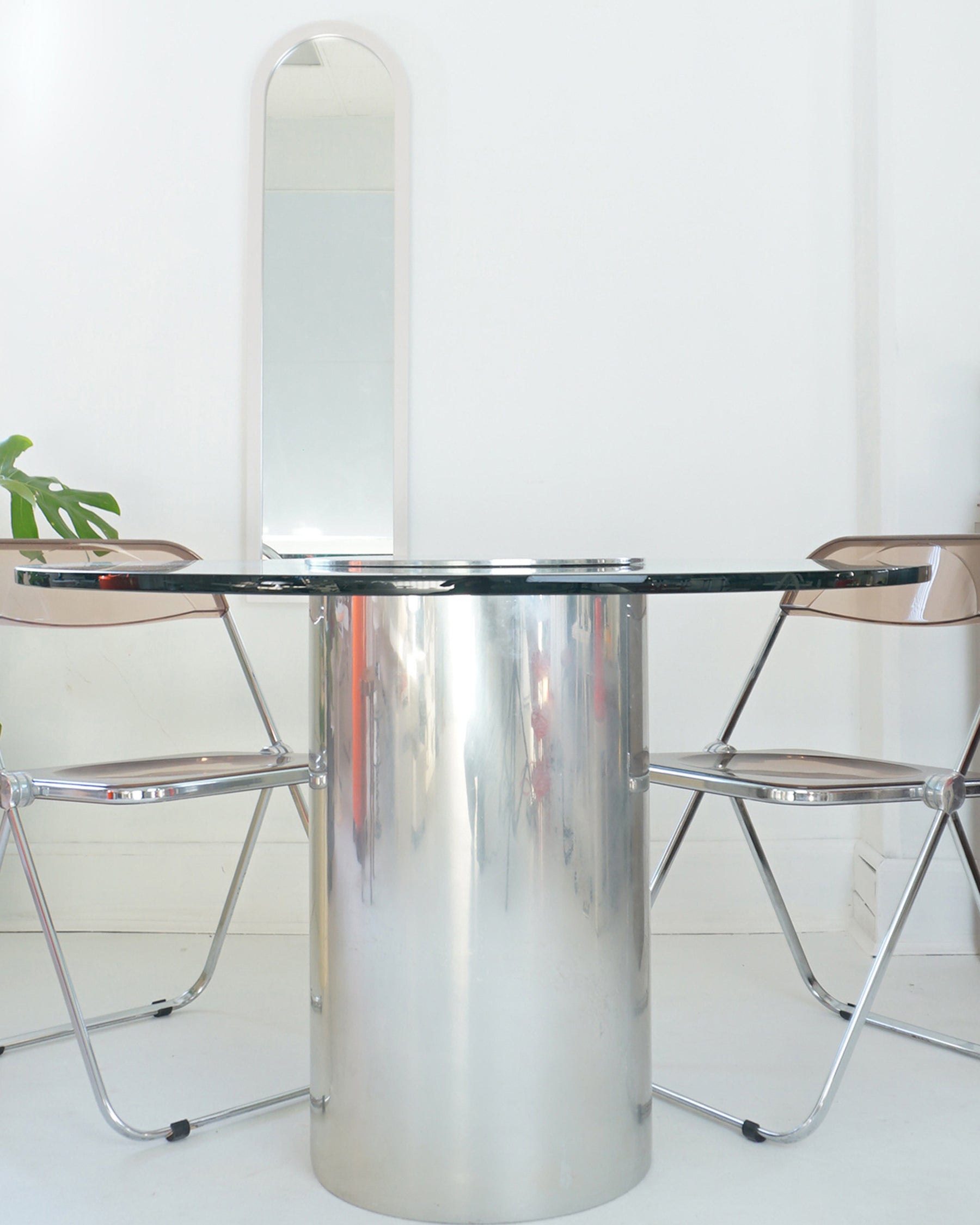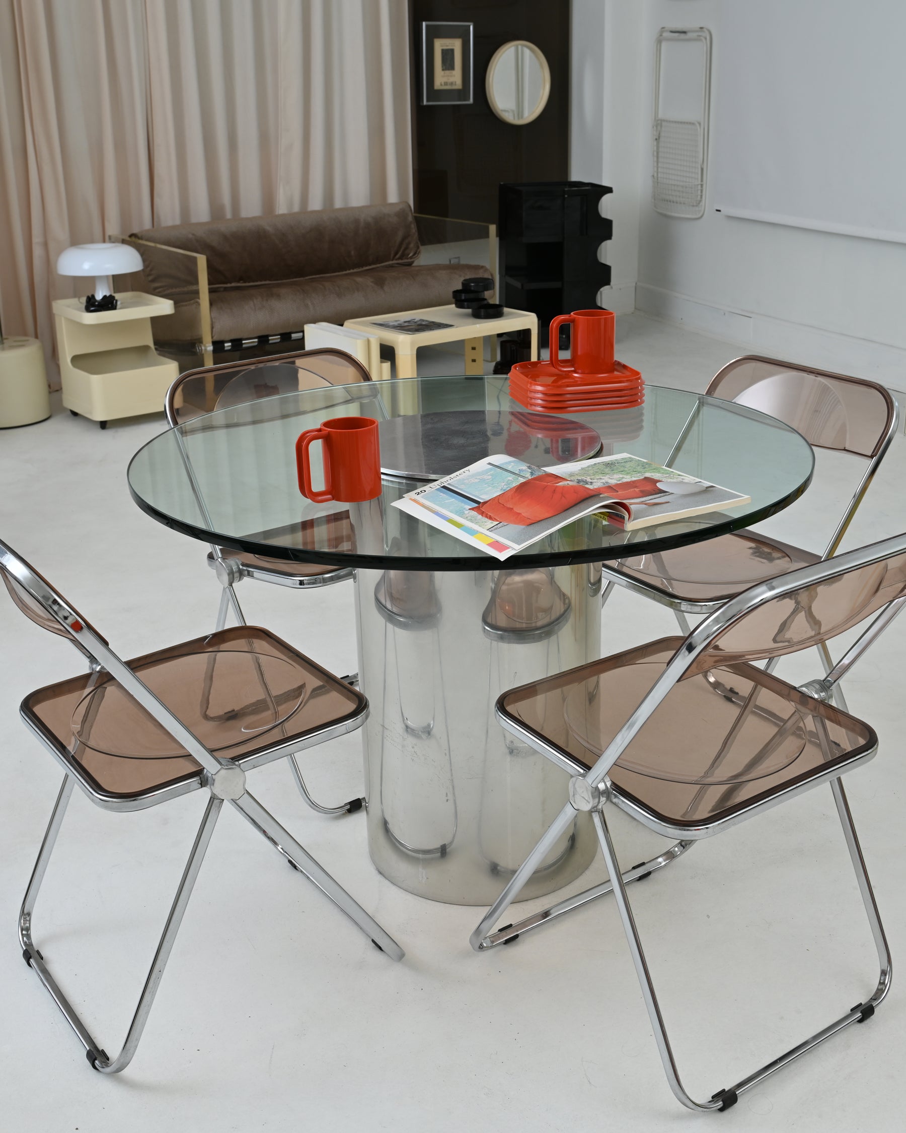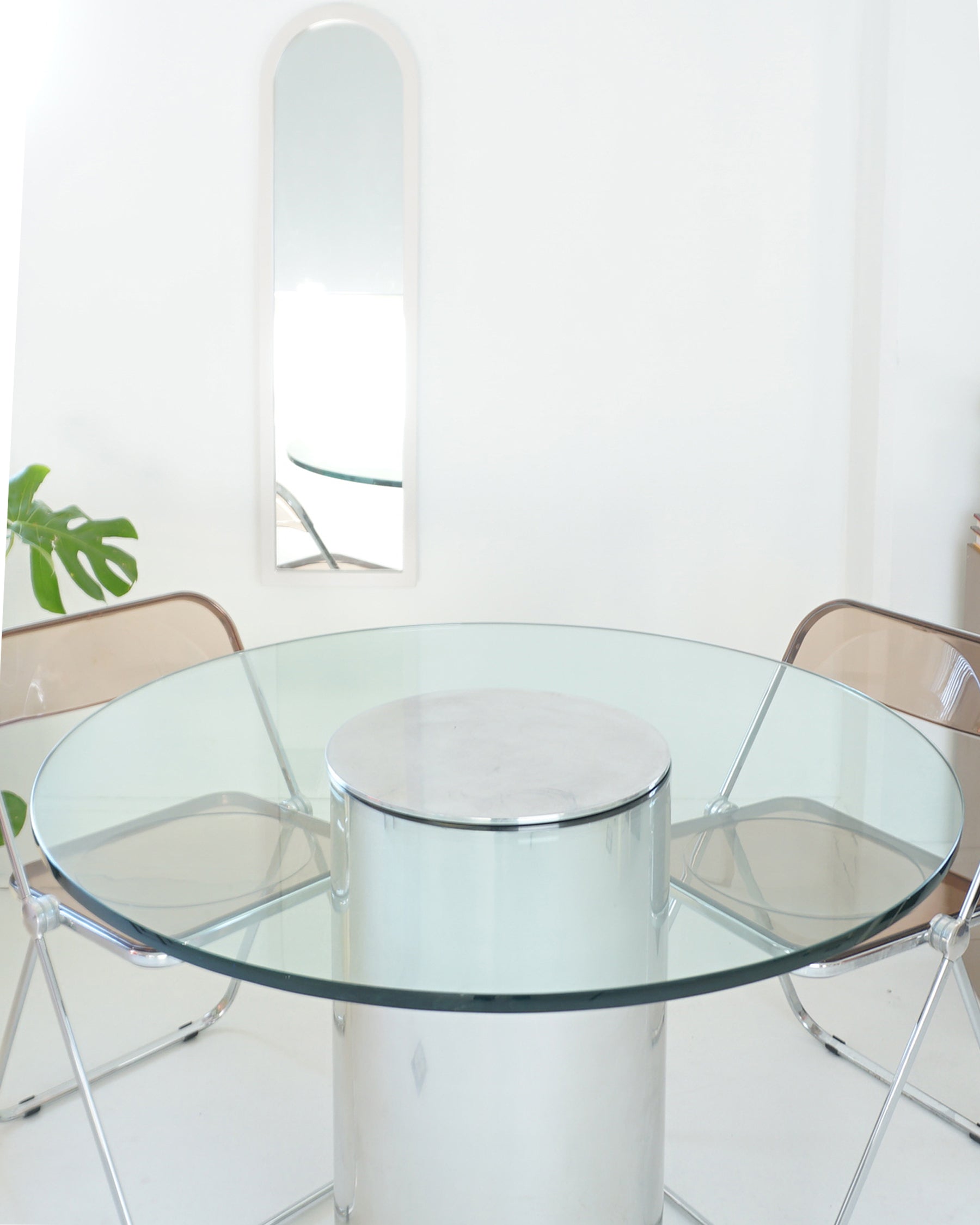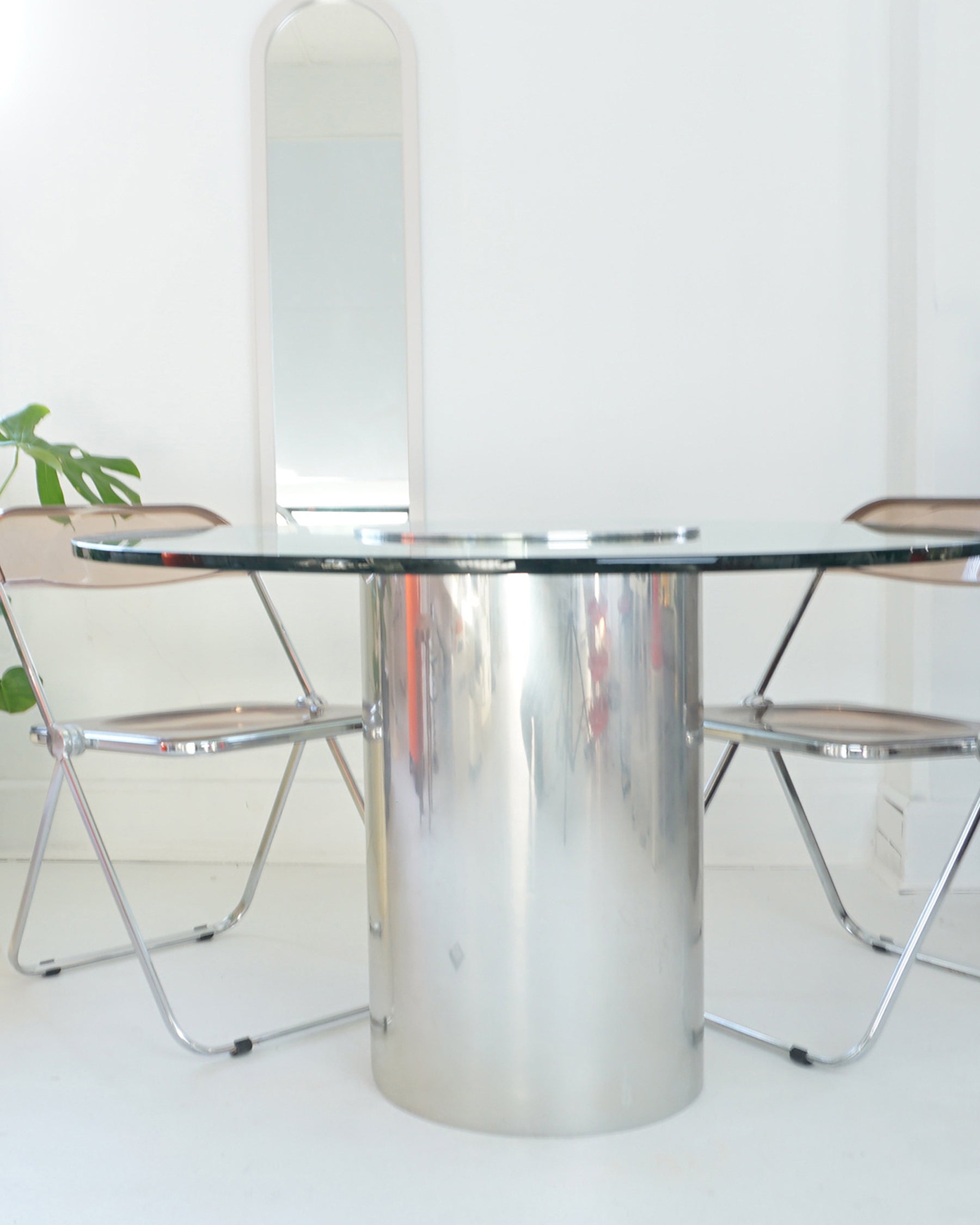 1980s Brueton Polished Chrome and Glass Cylindrical Pedestal Dining Table