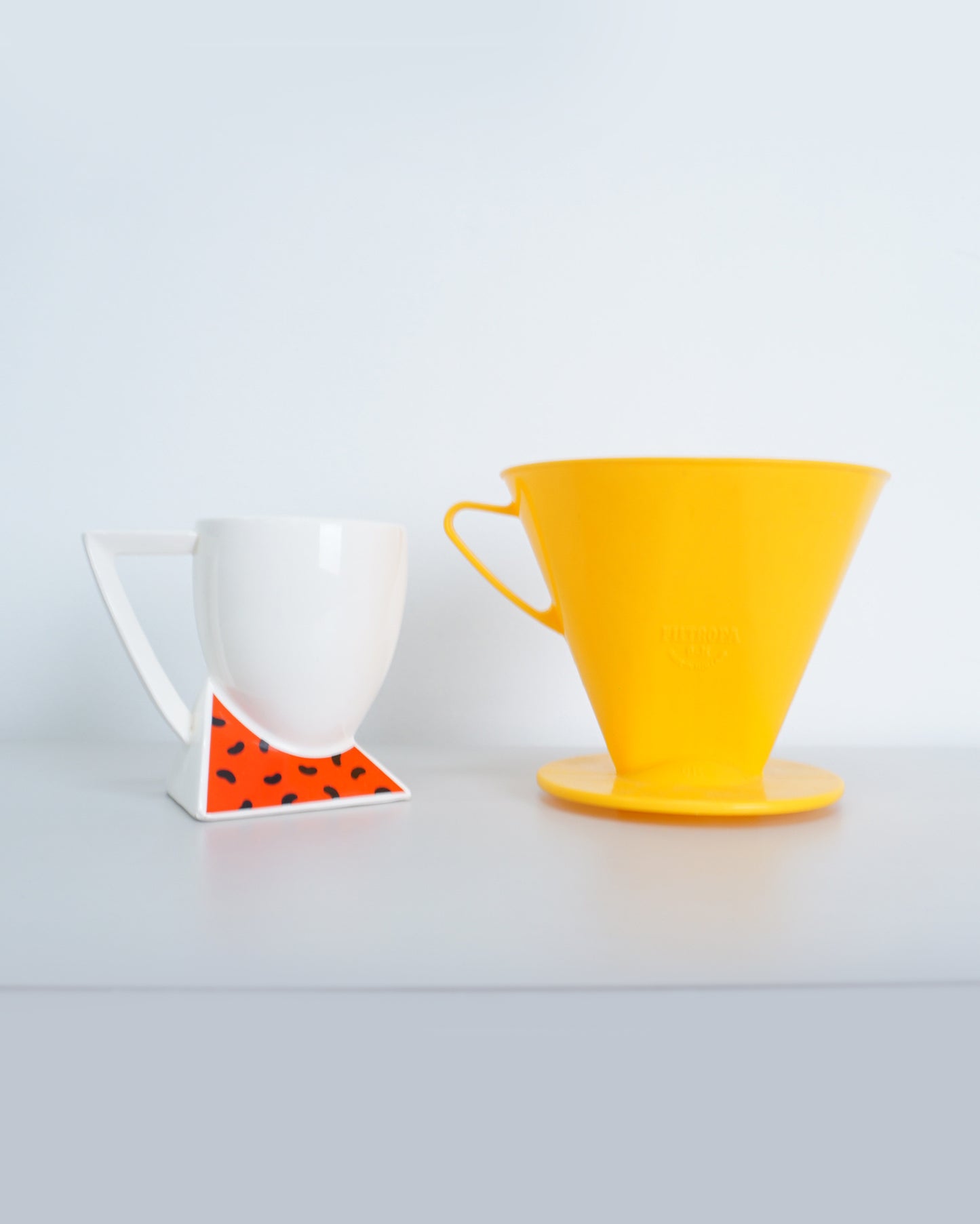 1960s large Filtropa 6-K atomic yellow pour-over coffee filter. Paper filters available online.