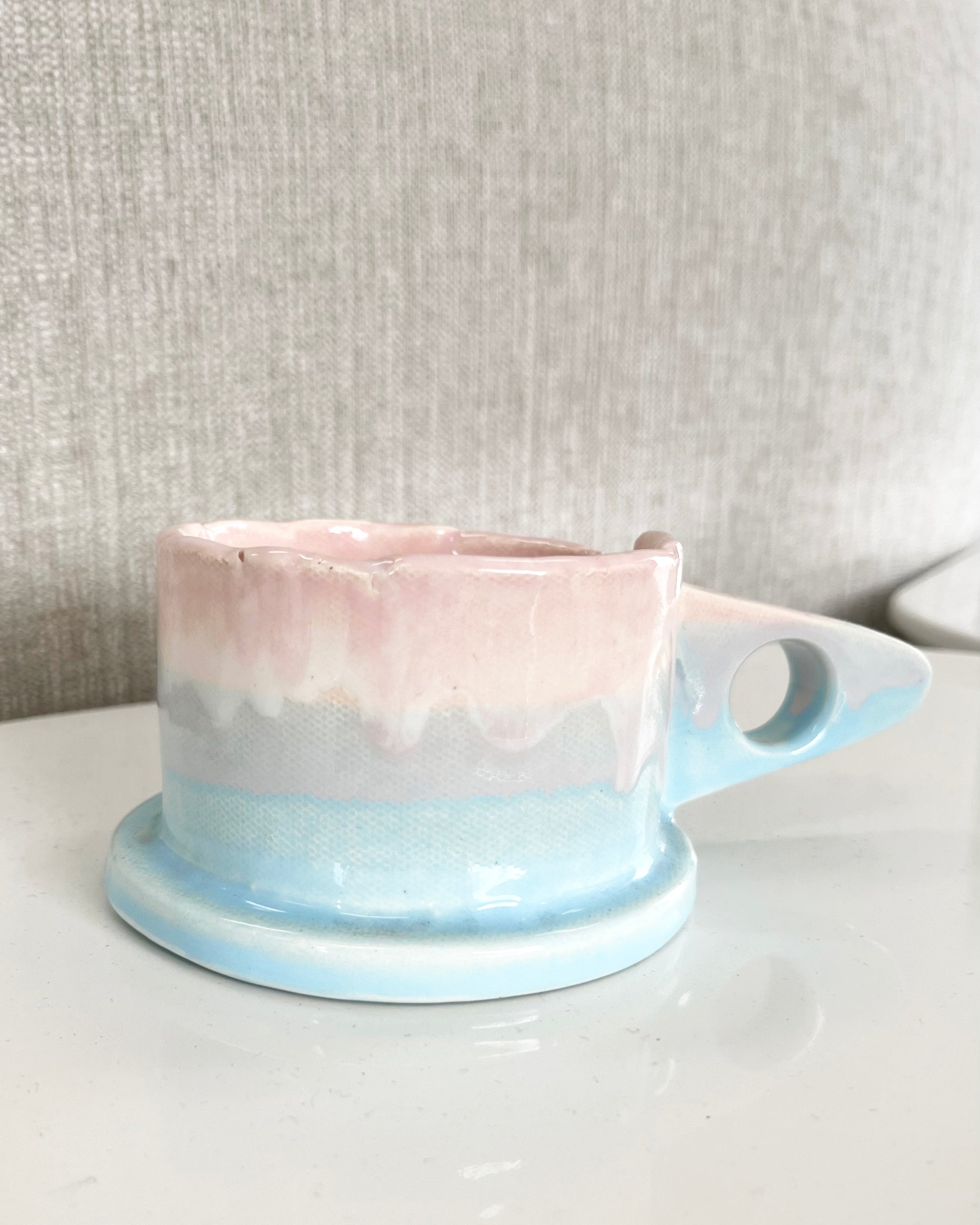 Tall mug: 4.5” high x 2.5”diameter 4” wide