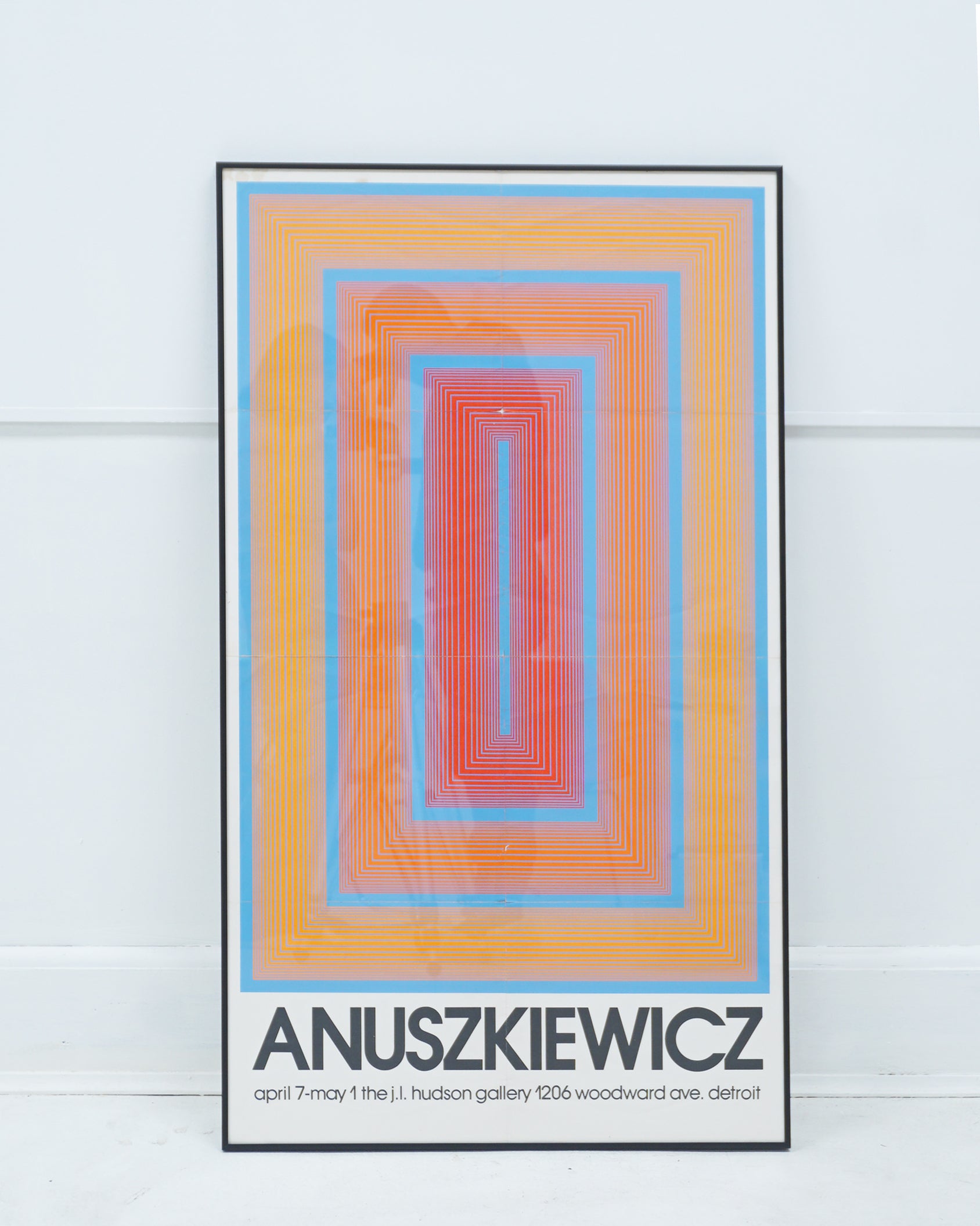 Richard Anuszkiewicz Op Art poster framed. Some creasing to print as shown in last photo. Framed and strung.
