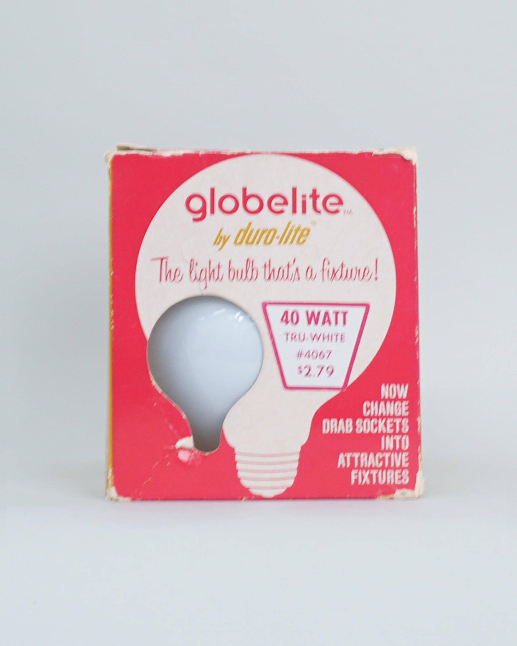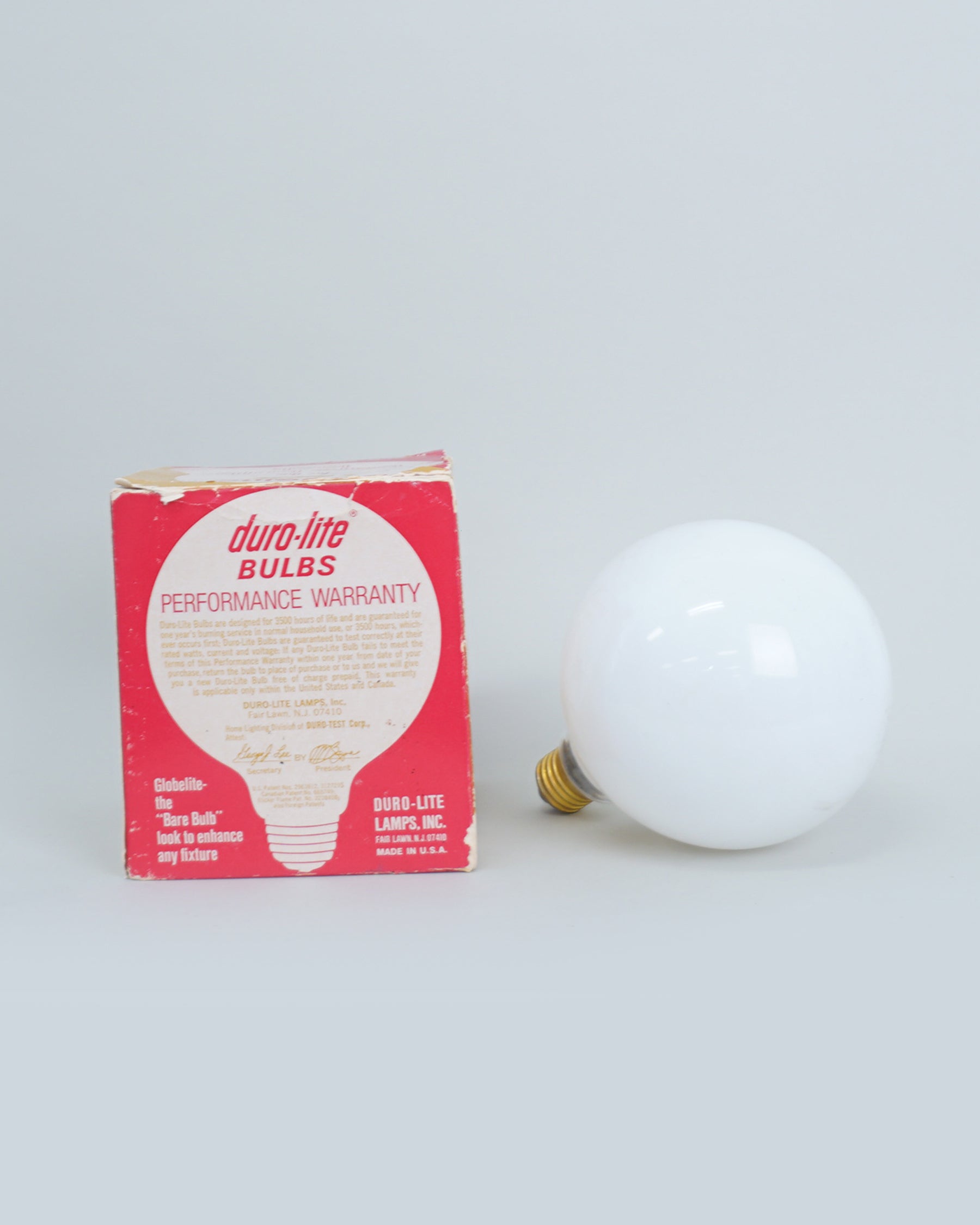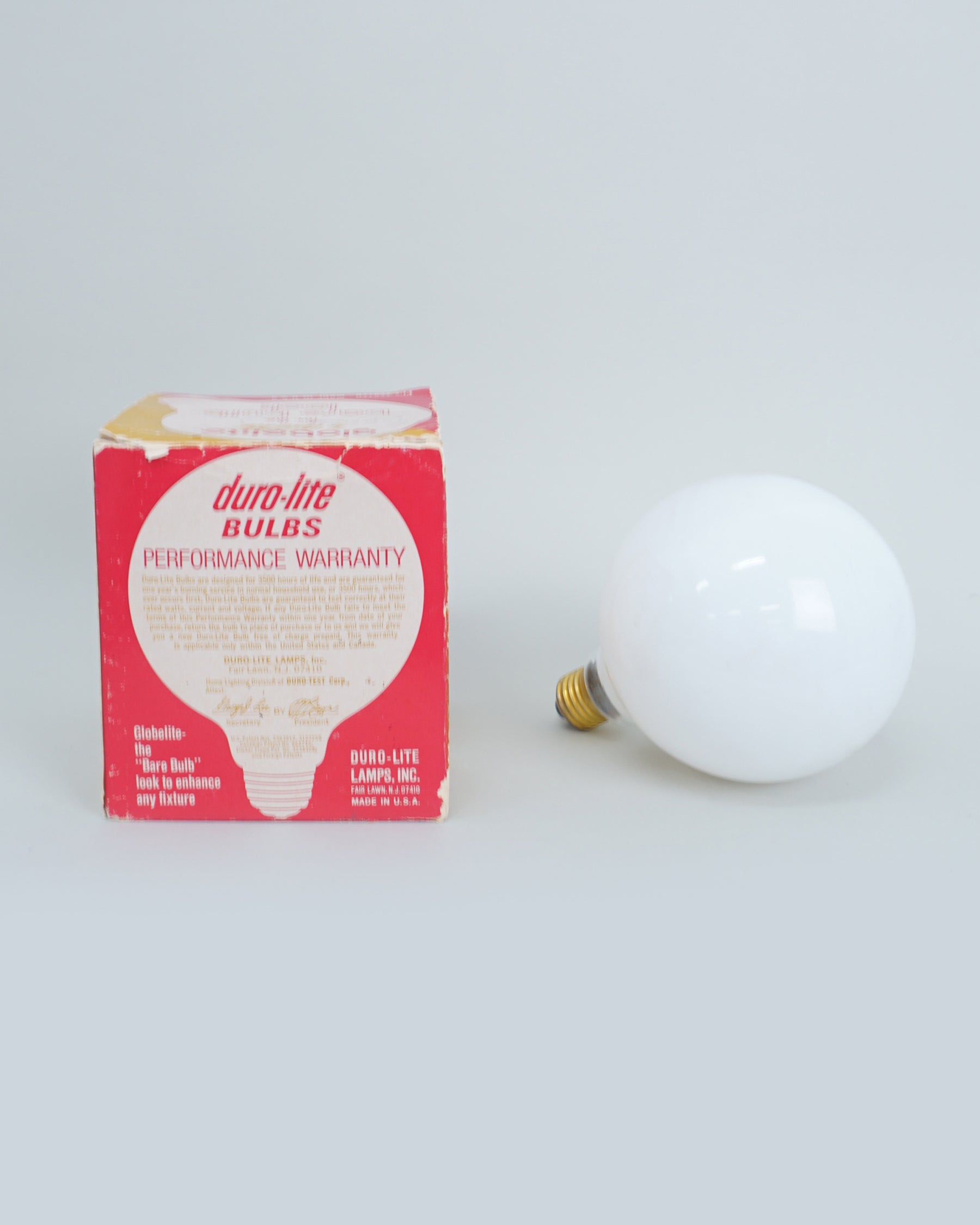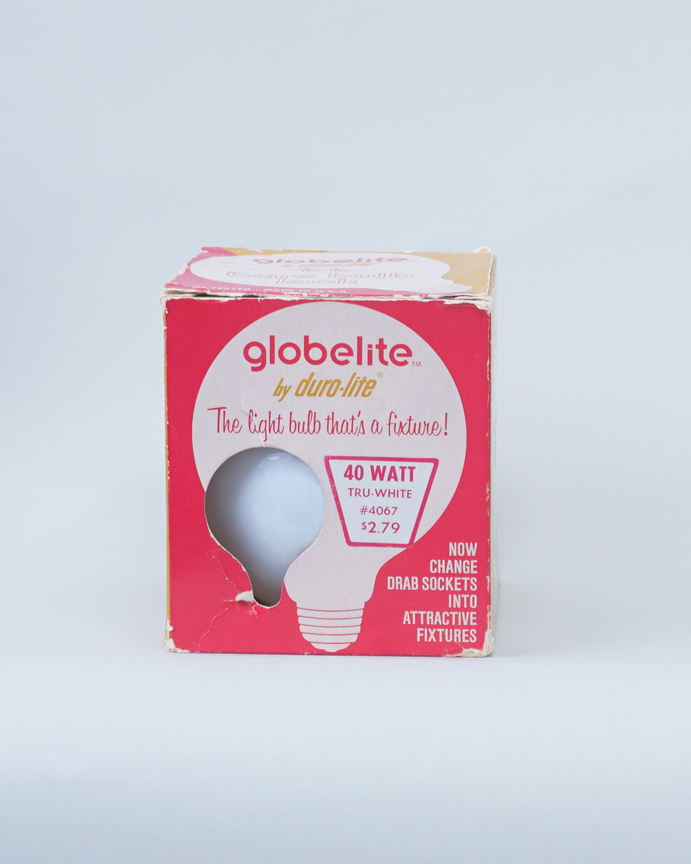 1960s Duro-Lite light bulb Sputnik by Globelite. Functions as both a light bulb and a fixture. This bulb is new however the box has significant wear and markings.