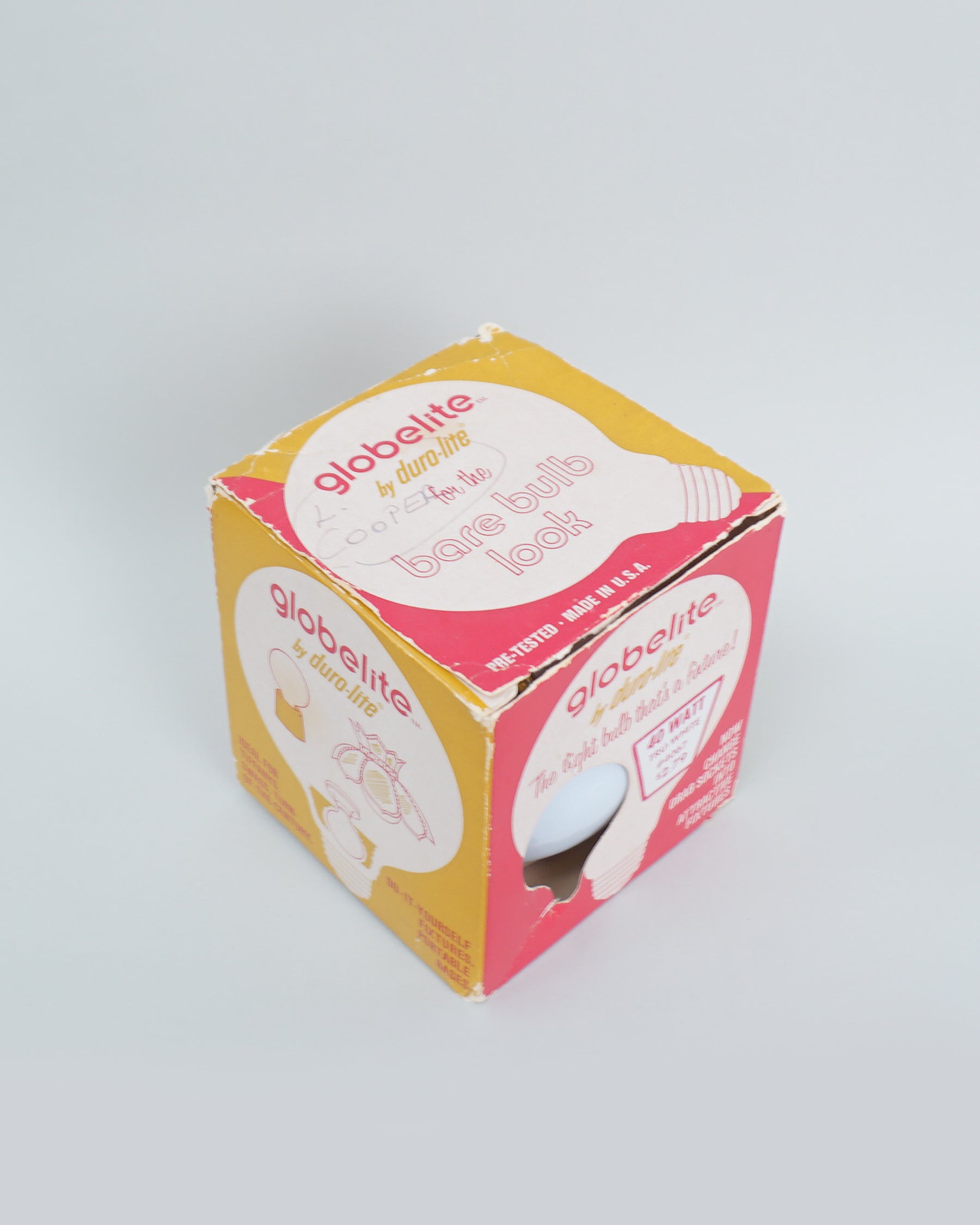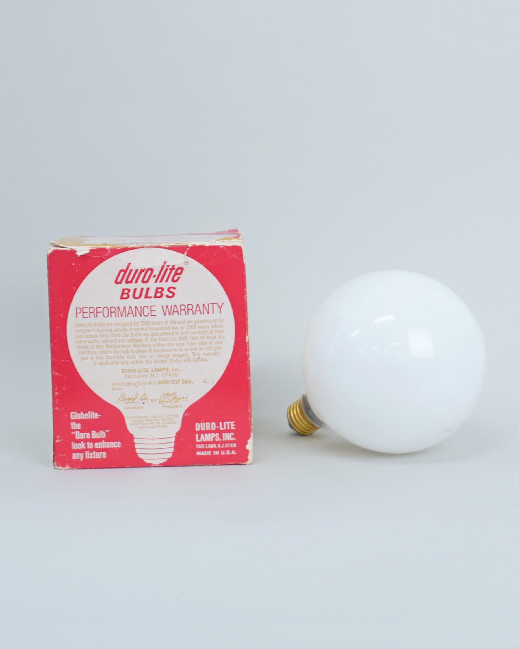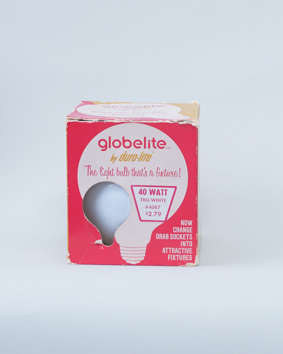 1960s Duro-Lite light bulb Sputnik by Globelite. Functions as both a light bulb and a fixture. This bulb is new however the box has significant wear and markings.